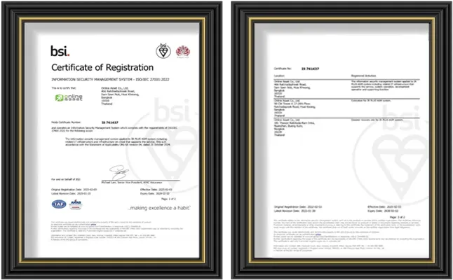 Online Asset Co., Ltd. has been certified with ISO/IEC 27001:2022 for its information security management system.