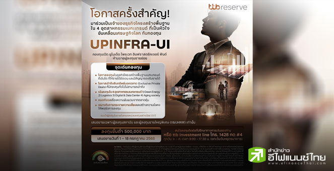 • ทีทีบี เปิดขาย IPO กองทุน UPINFRA-UI วันที่ 1-18 ก.ค.68 เน้นลงทุนใน 4 อุตสาหกรรมเมกะเทรนด์ระดับโลก