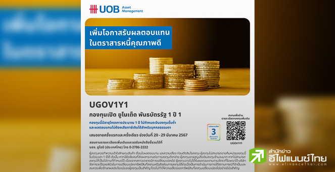 • บลจ.ยูโอบี เสนอขายกองทุน UGOV1Y1 เปิด IPO 20-29 มี.ค.67
