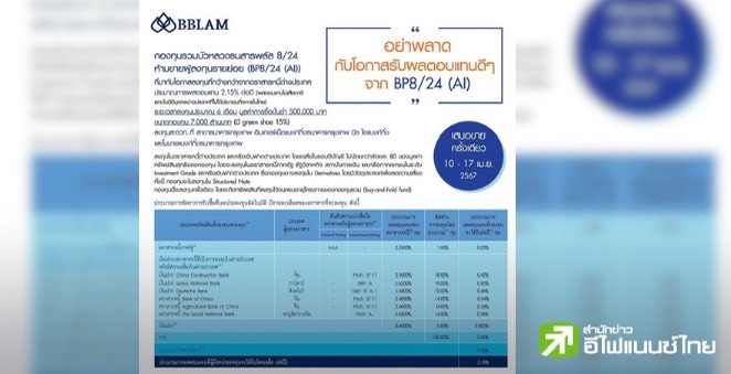 BBLAM เสนอขาย IPO ‘BP8/24(AI)’ วันที่ 10-17 เม.ย. นี้