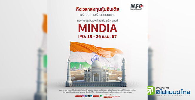 • MFC เสิร์ฟกองทุนหุ้นอินเดีย IPO 19-26 เม.ย นี้ รับอานิสงส์เศรษฐกิจโตโดดเด่นและใหญ่อันดับ 3 ของโลก