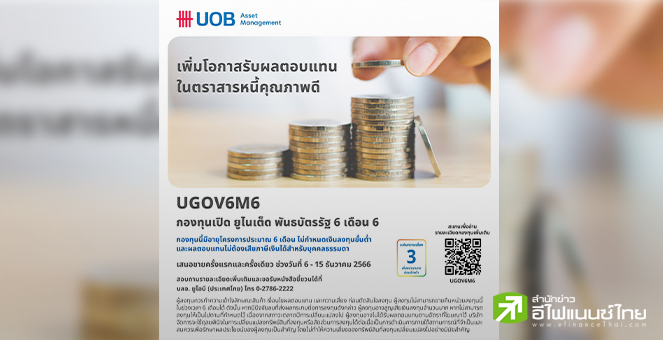 • บลจ.ยูโอบี เสนอขายกองทุน UGOV6M6  วันที่ 6-15 ธ.ค.นี้ เน้นลงทุนในพันธบัตรภาครัฐ