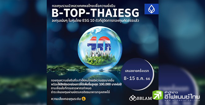 BBLAM เสนอขายกองทุน B-TOP-THAIESG วันที่ 8-15 ธ.ค.นี้ เน้นลงทุนหุ้น ESG 10 ตัวที่คัดสรรแล้ว