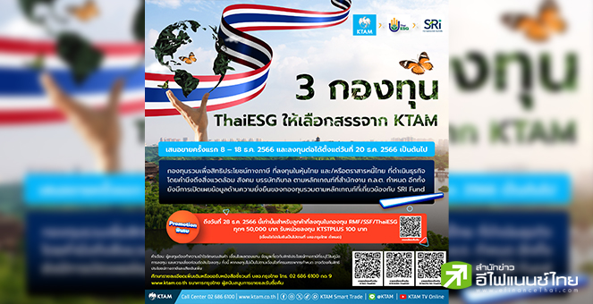KTAM เสนอขายกลุ่มกองทุน “Thai ESG” ครั้งแรกวันที่ 8-18 ธ.ค.นี้