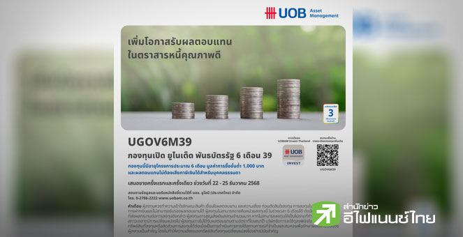 • บลจ.ยูโอบี เสนอโอกาสลงทุนในพันธบัตรภาครัฐ กองทุน `UGOV6M39` IPO 22-25 ธ.ค.68
