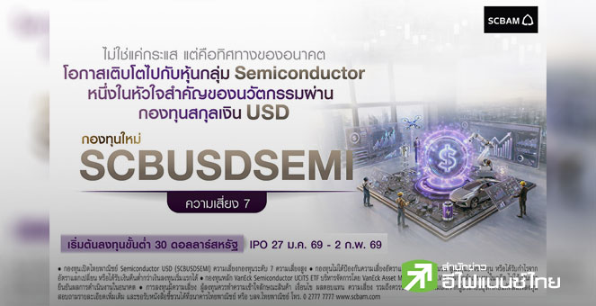 • SCBAM เปิดตัวกองทุน SCBUSDSEMI เพิ่มทางเลือกรับผลตอบแทนสกุลเงิน USD เสนอขาย 27 ม.ค.–2 ก.พ.69