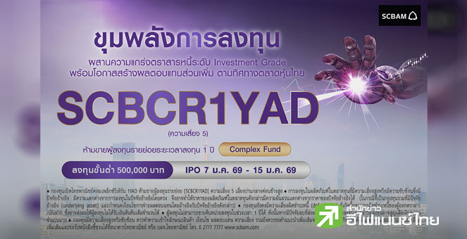 • บลจ.ไทยพาณิชย์ ออกกองทุน SCBCR1YAD ชูลงทุนตราสารหนี้-เงินฝาก ลดเสี่ยงขาดทุนเงินต้น