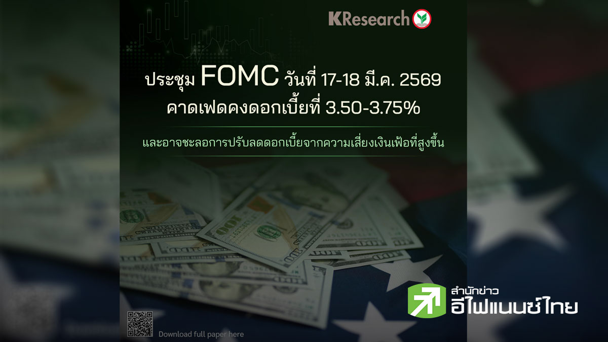 star_borderModal Upgrade Packageศูนย์วิจัยกสิกรไทย ฟันธงเฟดคงดอกเบี้ยที่ 3.50-3.75% รับความขัดแย้งในตะวันออกกลาง หนุนเงินเฟ้อพุ่ง13 Mar 2026 15:15