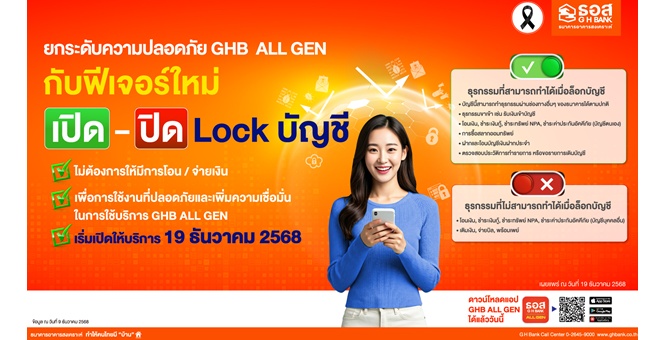 star_borderModal Upgrade Packageธอส. เพิ่มฟังก์ชัน เปิด-ปิด ล็อกบัญชี ยกระดับความปลอดภัย ผ่าน Application : GHB ALL GEN ให้บริการวันที่ 19 ธันวาคม 2568 เป็นต้นไป19 Dec 2025 12:29