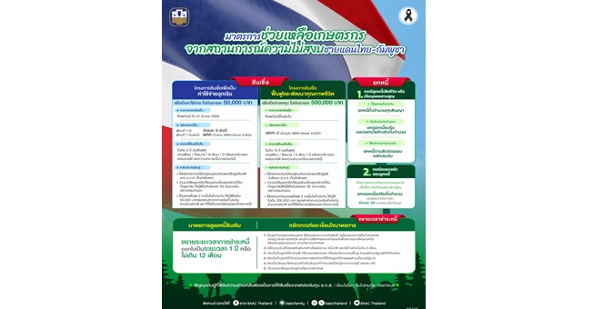 star_borderModal Upgrade Packageธ.ก.ส. จัดมาตรการช่วยเหลือลูกค้า ธ.ก.ส. ที่ได้รับผลกระทบ จากสถานการณ์ความไม่สงบชายแดนไทย – กัมพูชา19 Dec 2025 13:32