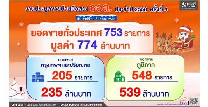 star_borderModal Upgrade Packageธอส. เผยผลประมูลครั้งที่ 4 ส่งท้ายปี 2568 จำหน่ายสูงถึง 774 ล้านบาท ดันบ้านมือสองขายดีเกินเป้าหมายที่ตั้งไว้19 Dec 2025 13:45
