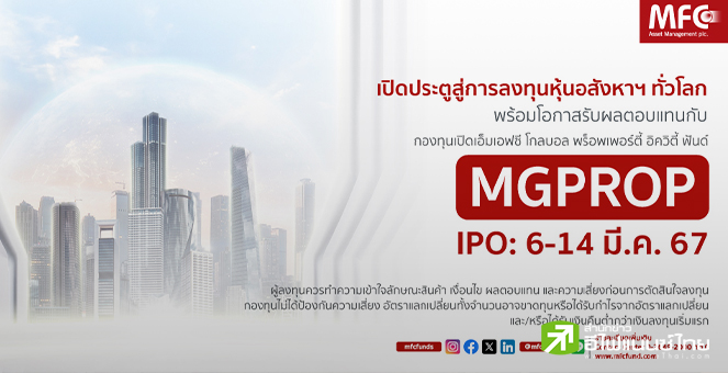 star_borderModal Upgrade PackageMFC ส่งกองทุน MGPROP ลงทุนอสังหาฯทั่วโลก รับเทรนด์เติบโต AI- Healthcare ขาย IPO 6-14 มี.ค 676 มี.ค. 2567 09:52 น.