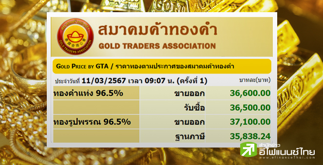 • ทองแท่งยังทำนิวไฮไม่หยุด ราคาขายออกพุ่งแตะ 36,250 บาท รับข่าวเฟดส่งสัญญาณลดดอกเบี้ย