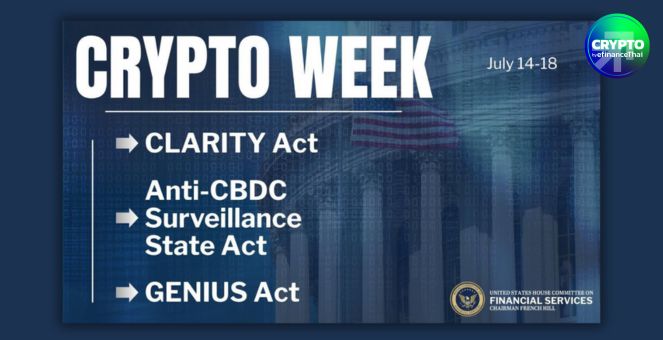 star_borderModal Upgrade Packageไมล์สโตนสำคัญ! สหรัฐฯ เตรียมโหวต 3 ร่างกฎหมายคริปโทฯ ในสัปดาห์นี้สภาคองเกรสสหรัฐฯ ประกาศให้สัปดาห์วันที่ 14–18 ก.ค. 2025 เป็น “Crypto Week” อย่างเป็นทางการ เดินหน้าพิจารณาร่างกฎหมายคริปโทฯ 3 ฉบับใหญ่ ที่อาจกำหนดอนาคตของสินทรัพย์ดิจิทัลทั้งโลก 14 Jul 2025 10:06