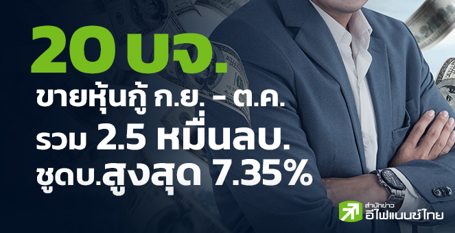 20 บจ.ขายหุ้นกู้ก.ย. - ต.ค.รวม 2.5 หมื่นลบ. ชูดบ.สูงสุด 7.35%