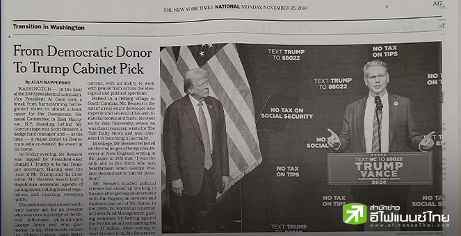 • ว่าที่รมว.คลังสหรัฐฯ หนุนดอลลาร์เป็นสกุลเงินหลักในทุนสำรองโลก ยันให้อิสระเฟดกำหนดทิศทางดอกเบี้ย