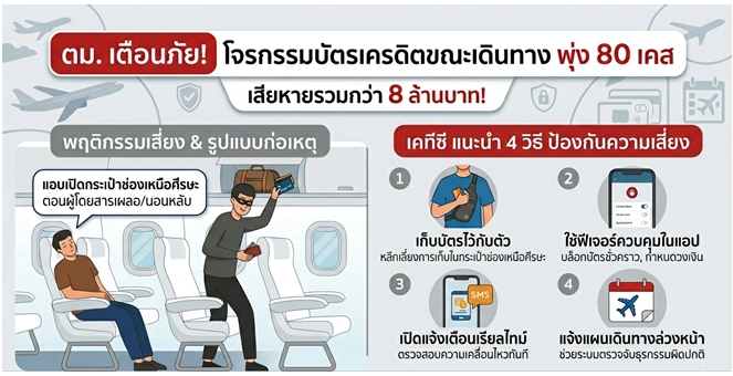 star_borderModal Upgrade Packageตม. เตือนภัยโจรกรรมบัตรเครดิตช่วงเดินทาง พุ่ง 80 เคส เสียหายกว่า 8 ล้านบาท เคทีซีแนะเก็บบัตรไว้กับตัว พร้อมใช้ฟีเจอร์ควบคุมผ่านแอปลดความเสี่ยง30 มี.ค. 2569 13:00 น.