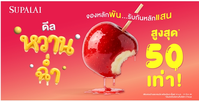• ศุภาลัย เสิร์ฟของขวัญรับปีใหม่! ส่ง “ดีลหวานฉ่ำ จองหลักพัน รับกันหลักแสน” ชวนคนไทยมีบ้านแบบ Happy พร้อมรับส่วนลดจัดเต็ม คืนสูงสุด 50 เท่า!