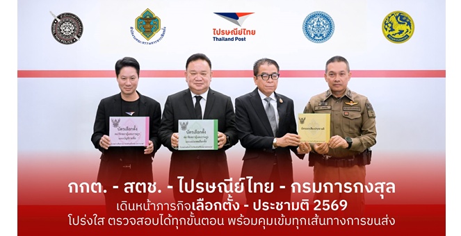 • “กกต. - สตช. - ไปรษณีย์ไทย - กรมการกงสุล” เดินหน้าภารกิจเลือกตั้ง –ประชามติ 2569 ย้ำทุกกระบวนการโปร่งใส ตรวจสอบได้ทุกขั้นตอน พร้อมคุมเข้มทุกเส้นทางการขนส่ง
