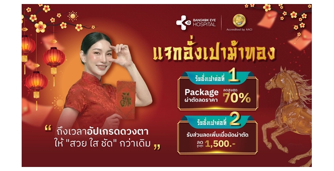 star_borderModal Upgrade PackageBangkok Eye Hospital แจก “อั่งเปาม้าทอง”พร้อมโปรแกรมดูแลตาครบวงจร ลดครั้งใหญ่ ในรอบปี6 ม.ค. 2569 11:15 น.