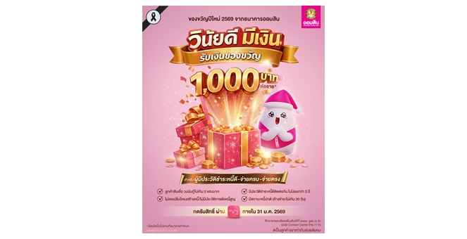 star_borderModal Upgrade Packageออมสิน ไม่ทิ้งลูกหนี้มีวินัย มอบของขวัญปีใหม่รายละ 1,000 บาท แก่ผู้มีประวัติชำระหนี้ดี-จ่ายครบ-จ่ายตรง6 ม.ค. 2569 12:15 น.