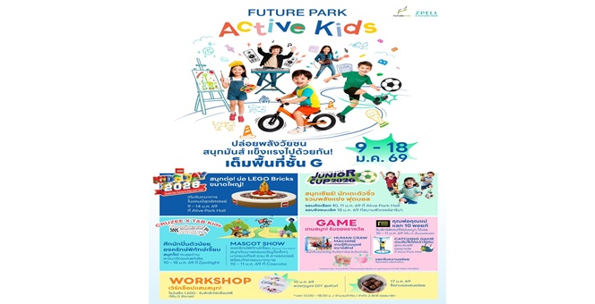 star_borderModal Upgrade Packageปักหมุดฉลองวันเด็ก 2569 FUTURE PARK ACTIVE KIDS 2026 ปล่อยพลังวัยซน สนุกมันส์ แข็งแรงไปด้วยกัน! เริ่ม 9 – 18 มกราคม 2569 ที่ ศูนย์การค้าฟิวเจอร์พาร์คและสเปลล์6 ม.ค. 2569 13:56 น.