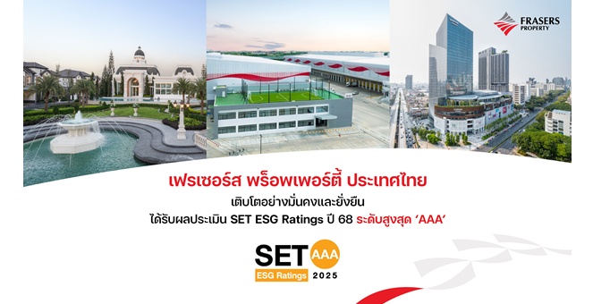 star_borderModal Upgrade Packageเฟรเซอร์ส พร็อพเพอร์ตี้ ประเทศไทย เติบโตอย่างมั่นคงและยั่งยืน ได้รับผลประเมิน SET ESG Ratings ปี 68 ระดับสูงสุด ‘AAA’26 ธ.ค. 2568 09:42 น.