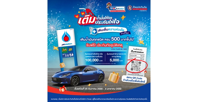 star_borderModal Upgrade Packageพีทีที สเตชั่น ร่วมกับ ทิพยประกันภัย เติมเต็มความห่วงใยทุกการเดินทาง เติมน้ำมันครบ 500 บาท มอบประกันอุบัติเหตุฟรี รับปีใหม่26 ธ.ค. 2568 13:26 น.
