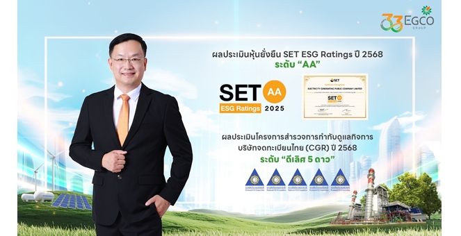 star_borderModal Upgrade PackageEGCO Group คว้าผลประเมินความยั่งยืน ปี 2568 SET ESG Ratings “ระดับ AA” และการกำกับดูแลกิจการ “ดีเลิศ 5 ดาว”23 ธ.ค. 2568 15:44 น.