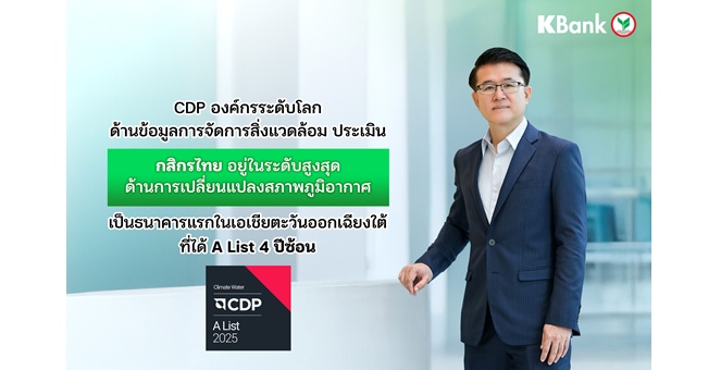 star_borderModal Upgrade PackageCDP องค์กรระดับโลกด้านข้อมูลการจัดการสิ่งแวดล้อม ประเมิน กสิกรไทย อยู่ในระดับสูงสุดด้านการเปลี่ยนแปลงสภาพภูมิอากาศ – เป็นธนาคารแรกในเอเชียตะวันออกเฉียงใต้ที่ได้ A List 4 ปีซ้อน24 ธ.ค. 2568 10:47 น.