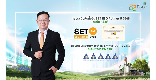 star_borderModal Upgrade PackageEGCO Group คว้าผลประเมินความยั่งยืน ปี 2568 SET ESG Ratings “ระดับ AA” และการกำกับดูแลกิจการ “ดีเลิศ 5 ดาว”23 ธ.ค. 2568 14:26 น.