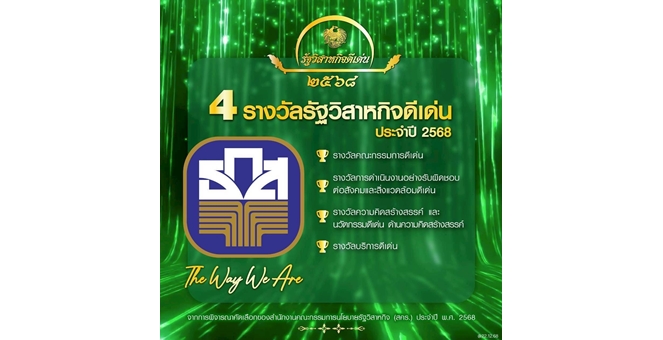 star_borderModal Upgrade Packageออมสิน กวาด 8 รางวัล “รัฐวิสาหกิจดีเด่น” ปี 68 ผลงานดีสุดในประวัติศาสตร์ธนาคาร คว้าสุดยอดรัฐวิสาหกิจยอดเยี่ยม 3 ปีซ้อน และรางวัลเกียรติยศการบริหารจัดการองค์กรดีเด่นต่อเนื่องปีที่ 722 ธ.ค. 2568 13:47 น.