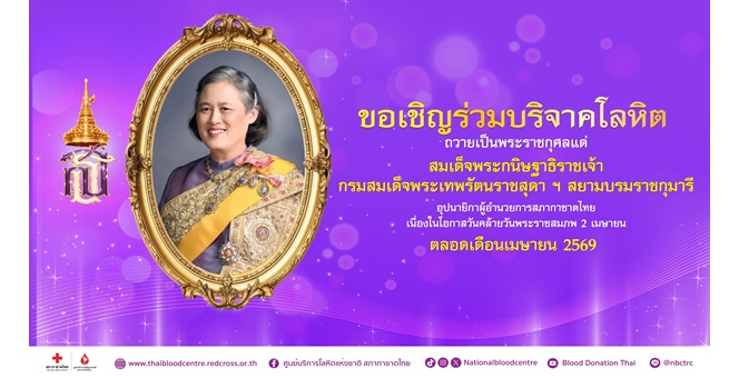 star_borderModal Upgrade Package“เรารักกรมสมเด็จพระเทพ ฯ” ร่วมบริจาคโลหิตเฉลิมพระเกียรติ 71 พรรษา ตลอดเดือนเมษายน 256927 Mar 2026 10:15