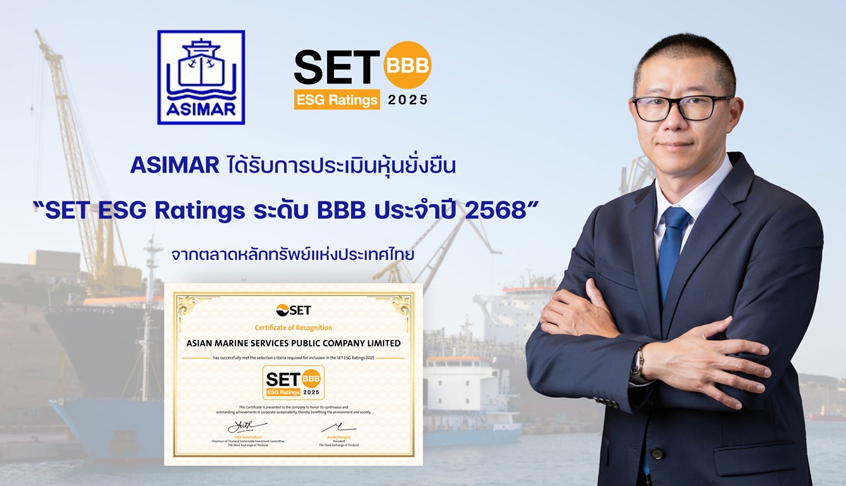 star_borderModal Upgrade PackageASIMAR ขยับมาตรฐานความยั่งยืน สู่ SET ESG Ratings ระดับ “BBB” ประจำปี 256816 ธ.ค. 2568 14:11 น.