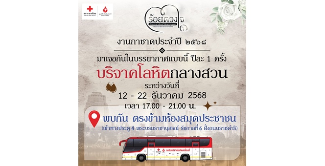 star_borderModal Upgrade Packageร้อยดวงใจปวงประชา น้อมสำนึกพระเมตตา องค์สภานายิกาสภากาชาดไทย ส่งต่อการให้ บริจาคโลหิตกลางสวน งานกาชาดประจำปี 256812 ธ.ค. 2568 12:23 น.