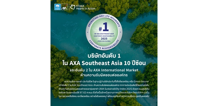 star_borderModal Upgrade Packageกรุงไทย-แอกซ่า ประกันชีวิต คว้าอันดับ 1 ในเอเชียอาคเนย์ต่อเนื่อง 10 ปีซ้อน และอันดับ 2 ใน AXA International Market ด้านความรับผิดชอบต่อองค์กร25 มี.ค. 2569 14:49 น.