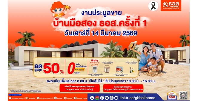 star_borderModal Upgrade Package14 มี.ค. นี้ ห้ามพลาด! โอกาสทองของคนอยากมีบ้าน ธอส. จัดประมูลบ้านมือสอง ครั้งที่ 1 ปี 2569 ลดราคาสูงสุด 50% พร้อมโปรสินเชื่อบ้านดอกเบี้ย 0% ต่อปี10 มี.ค. 2569 10:41 น.