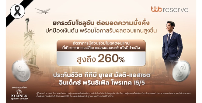 star_borderModal Upgrade Packageทีทีบี จับมือ พรูเด็นเชียล ประเทศไทย ยกระดับโซลูชันต่อยอดความมั่งคั่ง คุ้มครองเงินต้น พร้อมโอกาสรับผลตอบแทนสูงขึ้นกับ ประกันชีวิต “ทีทีบี ยูเอส มัลติ-แอสเซต อินเด็กซ์ พรินซิเพิล โพรเทค 15/5”6 มี.ค. 2569 09:32 น.