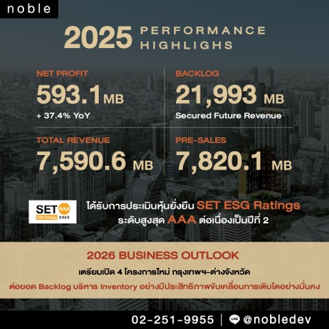 star_borderModal Upgrade Packageโนเบิล” โชว์ผลดำเนินงานปี 2568 กำไรสุทธิเติบโต 37.4% ตุน Backlog เกือบ 2.2 หมื่นล้านบาท รับรู้รายได้ตั้งแต่ปี 2569 เป็นต้นไป6 มี.ค. 2569 10:53 น.