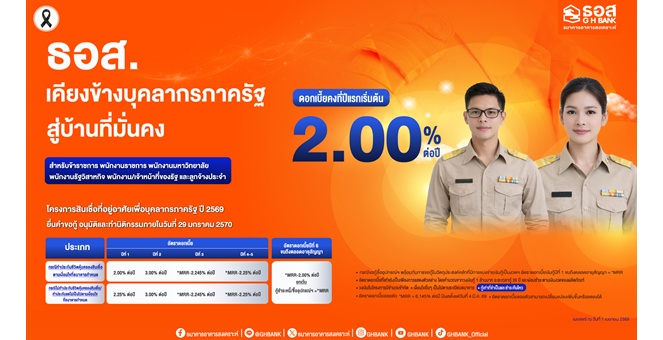 star_borderModal Upgrade Packageธอส. จัดสินเชื่อที่อยู่อาศัยเพื่อบุคลากรภาครัฐ ปี 2569 ดอกเบี้ยเริ่มต้น 2.00% ต่อปี1 เม.ย. 2569 17:47 น.