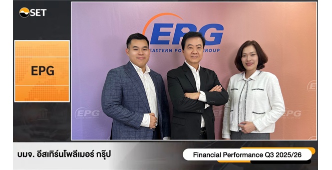 star_borderModal Upgrade PackageEPG ร่วมงาน Opportunity Day ให้ข้อมูลผลประกอบการไตรมาส 3 ปีบัญชี 2568/69 (ต.ค. 68 - ธ.ค. 68)25 ก.พ. 2569 16:50 น.