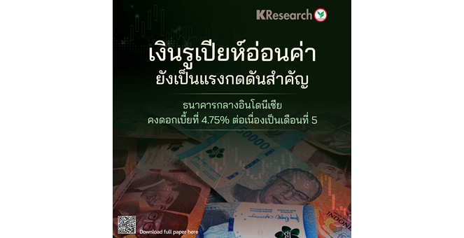 star_borderModal Upgrade Packageศูนย์วิจัยกสิกรไทย มองเงินรูเปียห์อ่อนค่ายังเป็นแรงกดดันสำคัญ BI คงดอกเบี้ยที่ 4.75% ต่อเนื่องเป็นเดือนที่ 523 ก.พ. 2569 17:31 น.