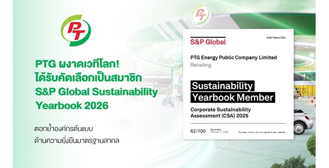 star_borderModal Upgrade PackagePTG ผงาดเวทีโลก! คว้าการรับรอง S&P Global Sustainability Yearbook 2026 ตอกย้ำองค์กรต้นแบบด้านความยั่งยืนมาตรฐานสากล20 ก.พ. 2569 09:46 น.