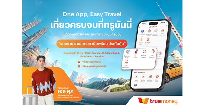 star_borderModal Upgrade Packageทรูมันนี่ ชวนร่วมงาน “One App, Easy Travel เที่ยวครบจบที่ทรูมันนี่” พร้อมใกล้ชิด “เอส–ศุภ สง่าวรวงศ์” 26 ก.พ. นี้ ที่สยามเซ็นเตอร์20 ก.พ. 2569 09:55 น.