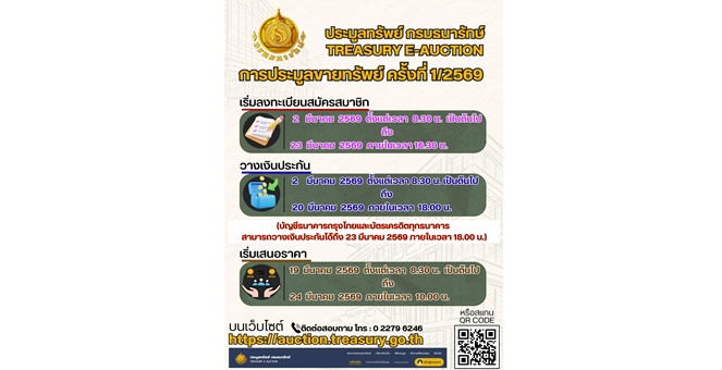 star_borderModal Upgrade Packageกรมธนารักษ์เปิดประมูลขายที่ราชพัสดุผ่านระบบออนไลน์ Treasury e-Auction (Recheck : treasury e-auction หรือ auction. Treasury) เริ่มลงทะเบียน 2 มี.ค. 6919 ก.พ. 2569 09:53 น.