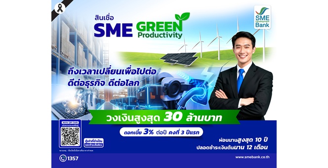 star_borderModal Upgrade Packageข่าวดี! ครม.ไฟเขียว SME D Bank ขยายวงเงินสินเชื่อ SME Green Productivity สูงสุดถึง 30 ล้านบาท หนุนเอสเอ็มอีเข้าถึงแหล่งทุนดอกเบี้ยต่ำ 3%ต่อปี เดินหน้าสู่ธุรกิจสีเขียว พาเศรษฐกิจไทยเติบโตยั่งยืน16 ก.พ. 2569 14:04 น.