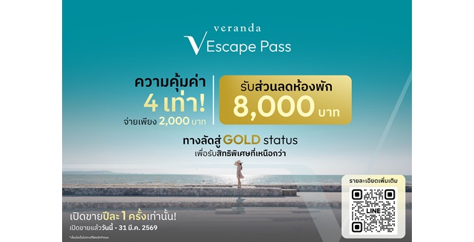 star_borderModal Upgrade Package‘VRANDA’ ขานรับท่องเที่ยวไทยฟื้นตัว เปิดตัวโปรแกรม “V Escape Pass” ชูสิทธิประโยชน์ระดับพรีเมียม ยกระดับประสบการณ์พักผ่อนที่เหนือกว่า ตอบรับทุกไลฟ์สไตล์นักท่องเที่ยวยุคสมาร์ทดิจิทัล16 ก.พ. 2569 14:41 น.