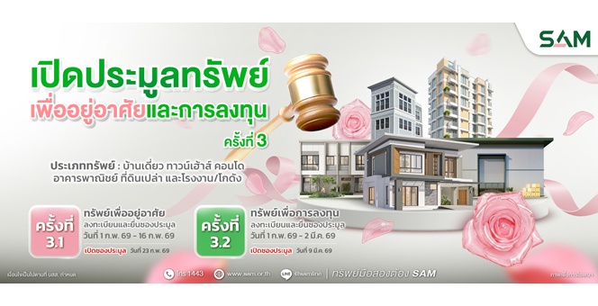 star_borderModal Upgrade PackageSAM ขนทรัพย์ NPA ทำเลทองทั่วไทย เปิดประมูลกว่า 96 ล้านบาท จับมือ 6 พันธมิตรธนาคารชั้นนำมอบข้อเสนอสินเชื่อสุดพิเศษ16 ก.พ. 2569 14:52 น.
