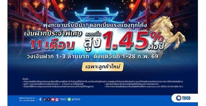 star_borderModal Upgrade Packageธ.ทิสโก้จัดเงินฝากประจำดอกเบี้ยพิเศษ แรงแซงทุกโค้ง!12 ก.พ. 2569 14:30 น.