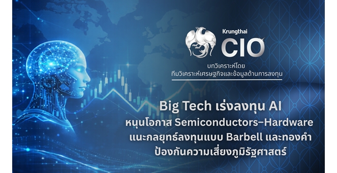 star_borderModal Upgrade PackageKrungthai CIO ชี้ Big Tech เร่งลงทุน AI หนุนโอกาส Semiconductors–Hardware ขณะ “Monetization” เป็นตัวชี้ขาด แนะกลยุทธ์ลงทุนแบบ Barbell รองรับกระแส Rotation ตลาด และลงทุนในทองคำป้องกันความเสี่ยงภูมิรัฐศาสตร์10 ก.พ. 2569 16:22 น.